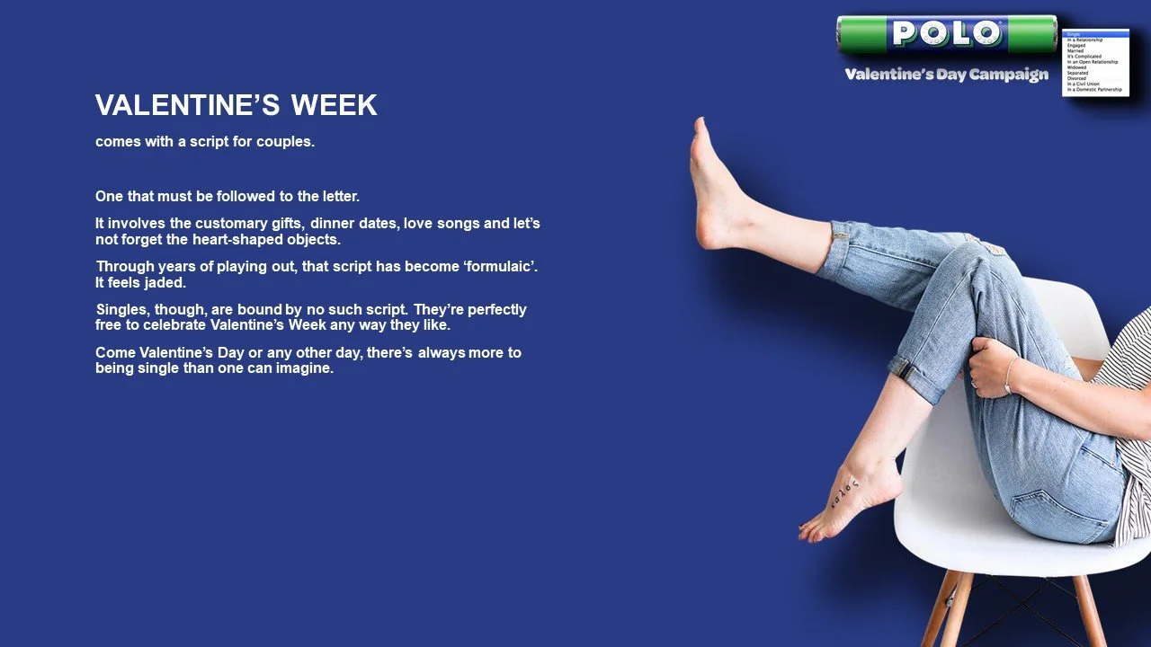 Though #RefreshinglySolo was the campaign, Polo had also launched a limited edition pack for V Day with the message 'It's Cool To Be Single'.