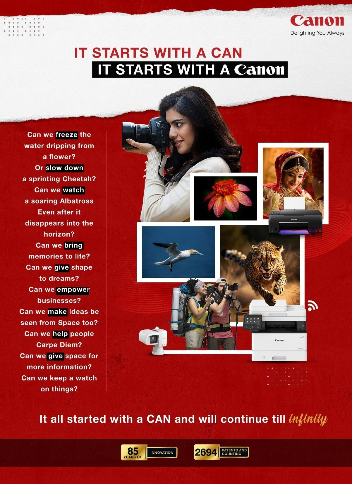 For the Canon Corporate Campaign, Canon India aimed to highlight how its innovations are making lives better in all aspects and raise awareness about the fact that, beyond imaging solutions, it also offers surveillance, workflow management, and cloud services. It all began with looking at the brand architecture and then translating the brand purpose.